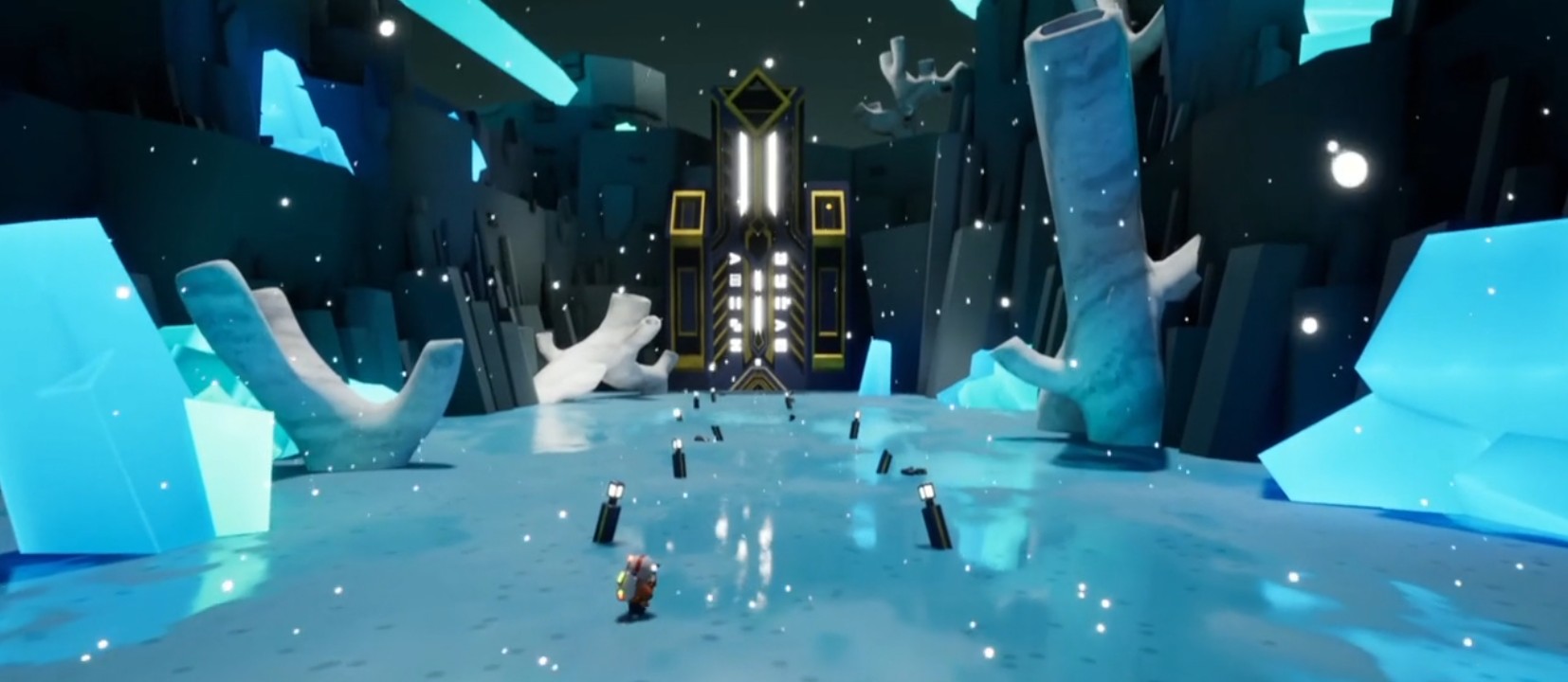 In the level proposed by the team, the archaeologist embodied by the player will have to move through one of the logistical zones of this vanished civilisation, using the railways, transport platforms and various paths to reach the city below.