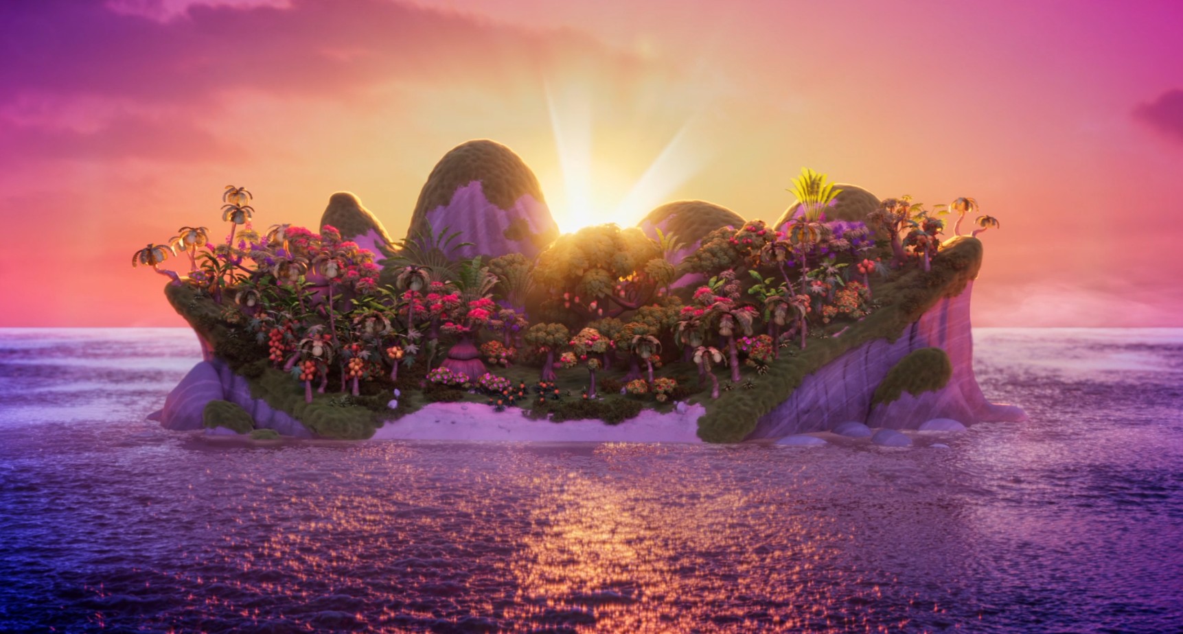 “In contrast, we wanted the island across the water to look like a cornucopia, covered in juicy, colourful fruit.
