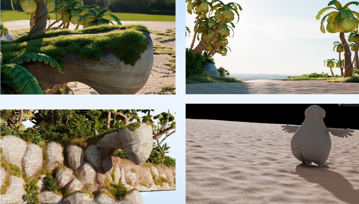 “Among the various R&D experiments linked to this project, we created a Frustum system to remove the groom from parts not visible from the camera, as well as an automatic groom writing programme, with different quality levels depending on the distance of the dodos from the camera. We also set up an instancing system to create backgrounds with lots of plants and large crowds of dodos, while working on sand simulation with our characters.”