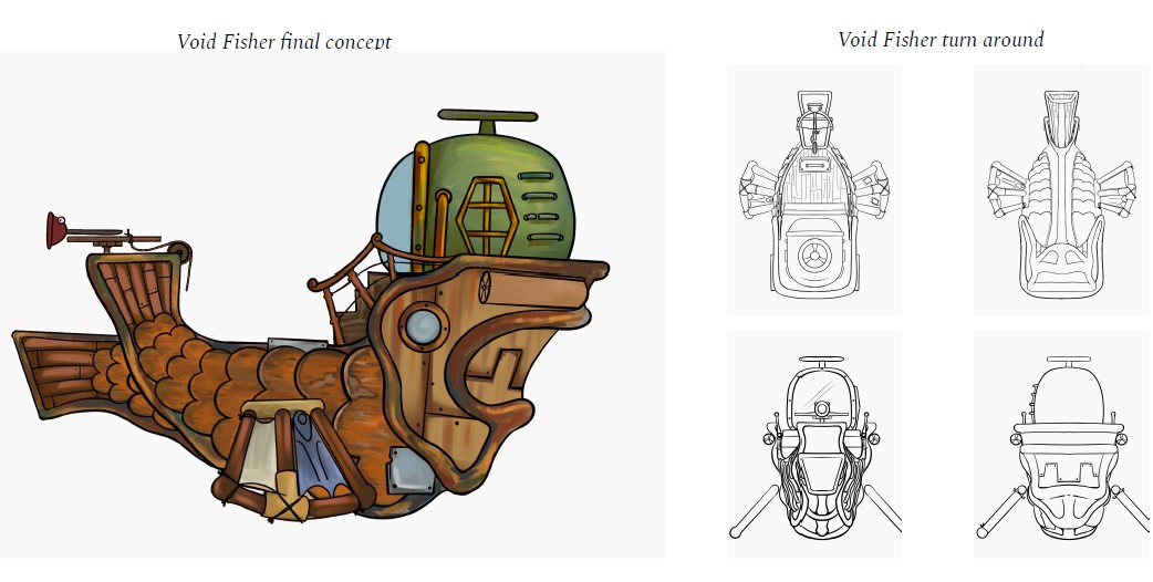 That’s why the hull of the ship looks like fish scales, and why it’s quite round and soft, quite organic.” As an added nod to their character, if you take a closer look, you’ll also notice that the ship’s cabin is designed like a diver’s bubble… just like Solan’s helmet!
