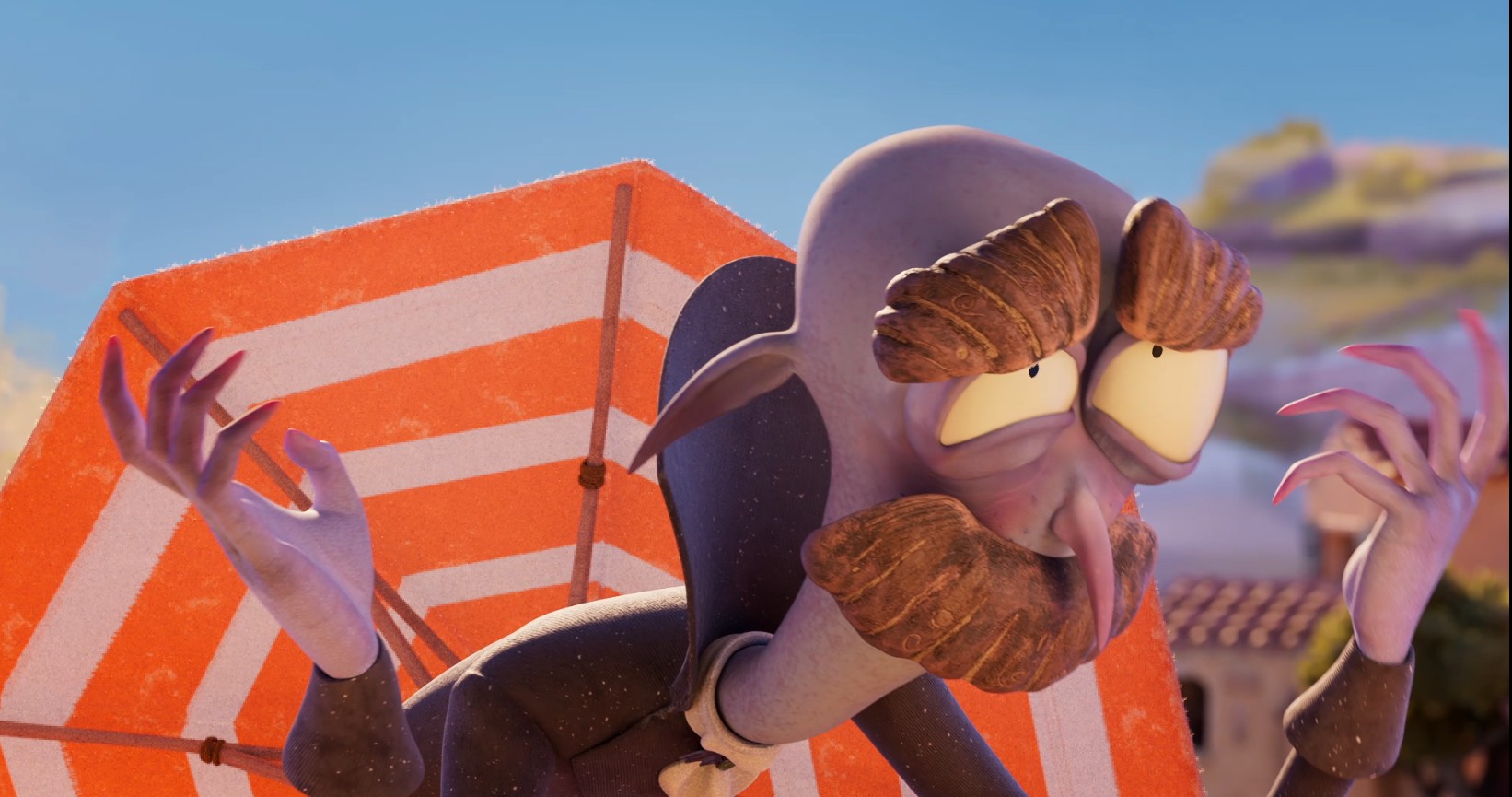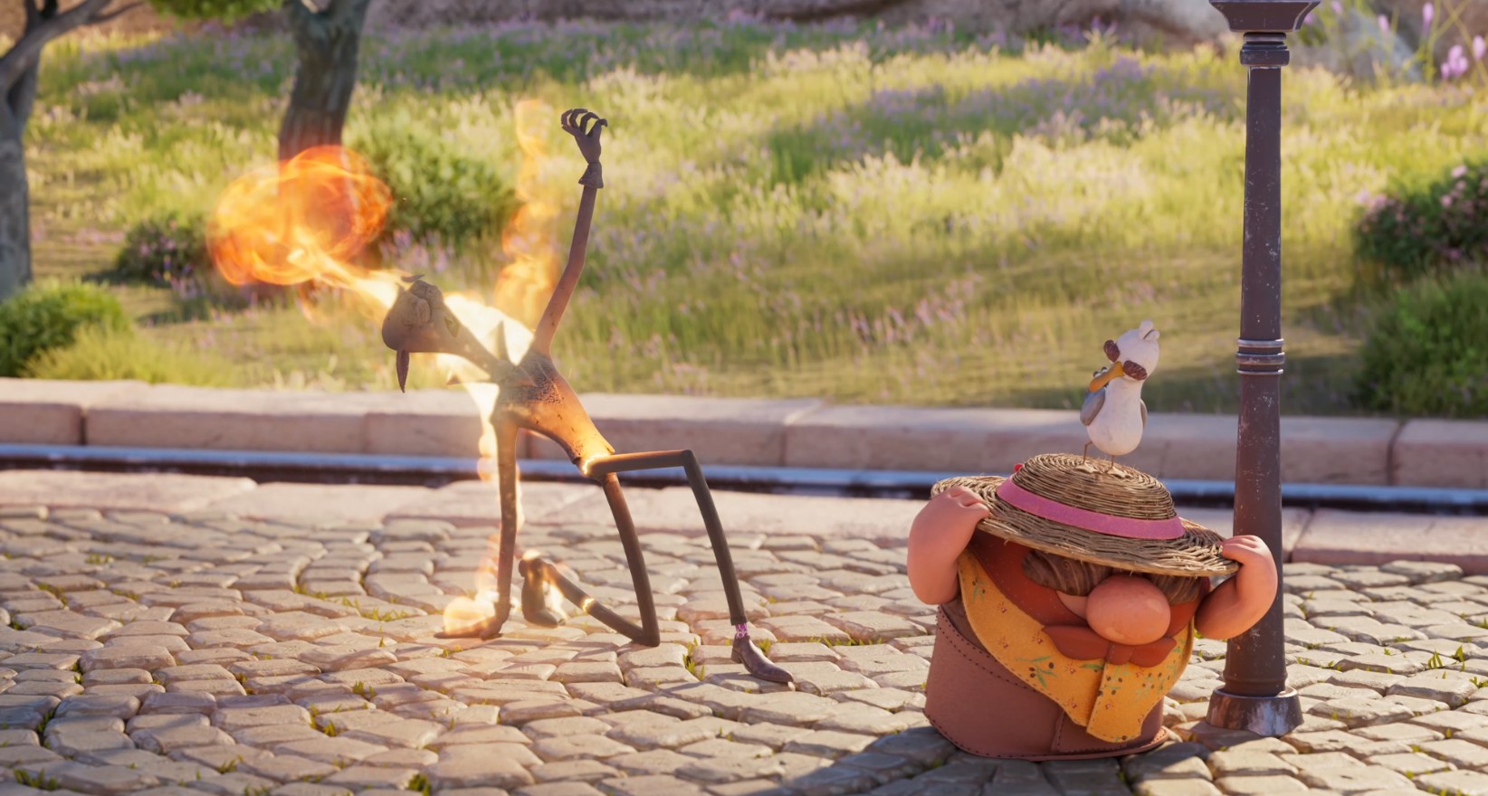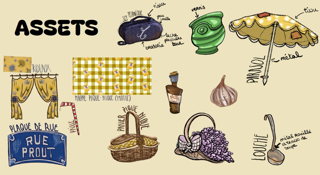 Petru is alone, in the shade, surrounded by the sun, at a bistro table. In a last-ditch attempt, he reaches for the Marcel next to him. But the Marcel is in the sun and Petru gets burnt… In despair and anger, Petru knocks his table over. A bottle of Pastis rolls to the floor and the Marcels fight over it, giving Petru a brilliant idea.