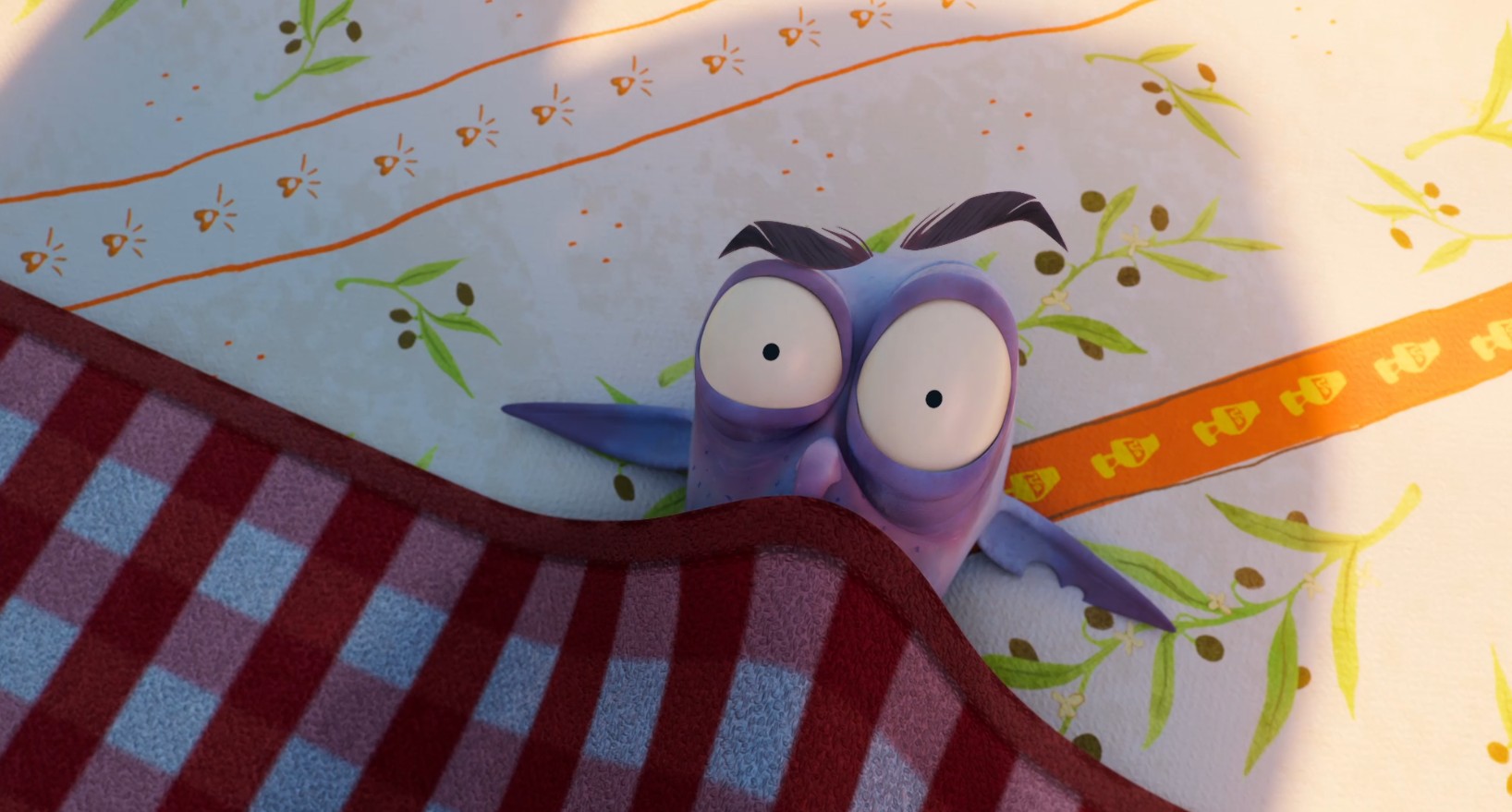 Petru, hiding under a tablecloth, arrives next to his new victims. Stealthily, menacingly, his fangs ready, he lunges! A Marcel, invited to the picnic, jumps onto the tablecloth and unknowingly immobilises Petru.