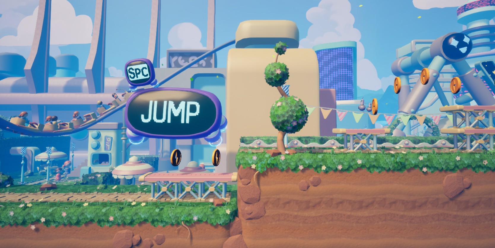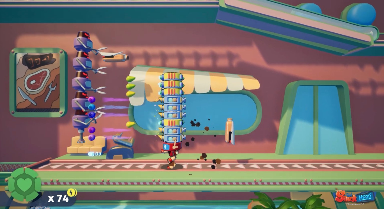 Stackhead is a 2.5D platformer and shooter that plunges you into a futuristic theme park controlled by artificial intelligence.