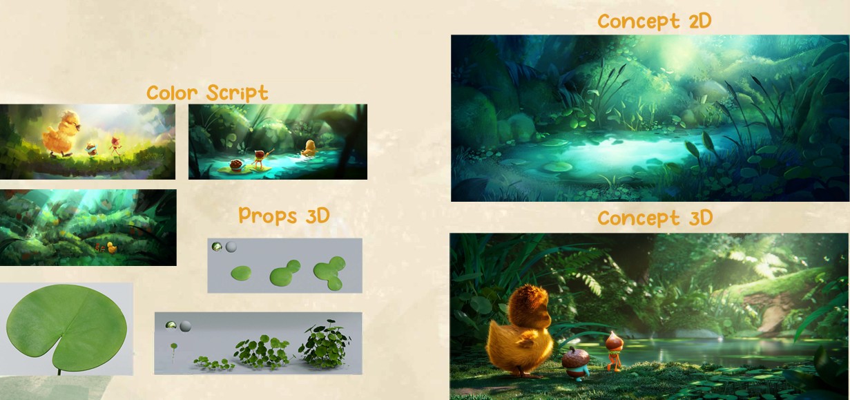 Au départ, l’idée était de développer une véritable histoire d’action et d’aventure, avec une touche de magie, mettant en scène ces personnages. Avec le temps, le projet a cependant beaucoup évolué. Et même si l’idée de raconter les aventures de ces petits êtres accompagnant un caneton à travers la forêt est restée intacte, le ton général du film s’est transformé. L’histoire a peu à peu laissé de côté la magie et l’action pour s’orienter vers un style plus simple, pensé avant tout pour être accessible et adapté à un public plus jeune.