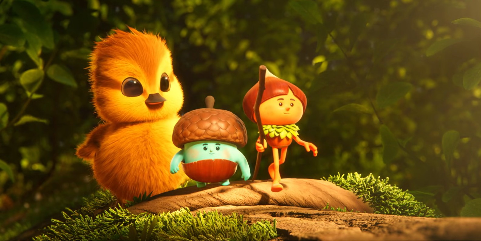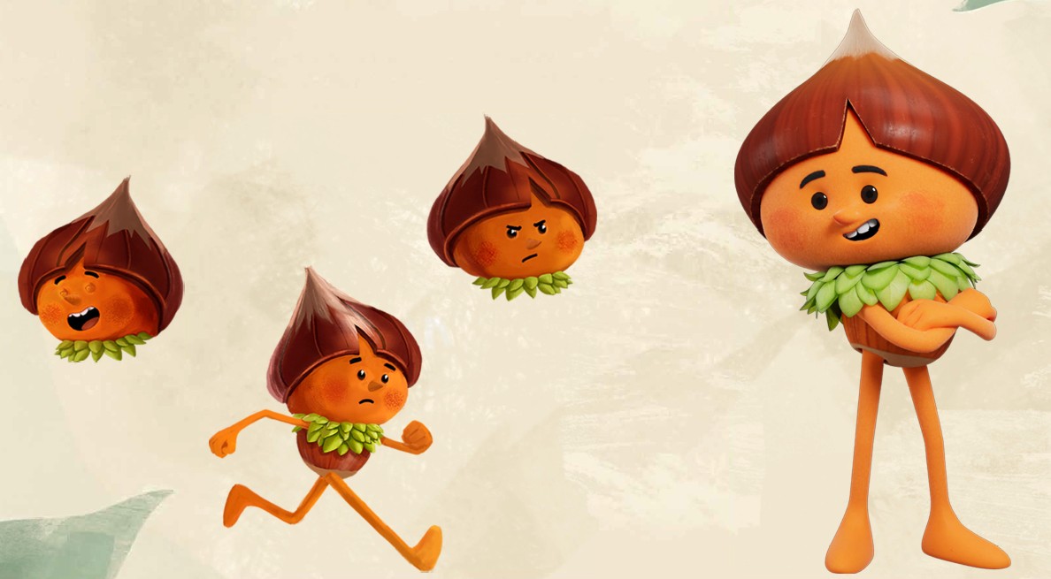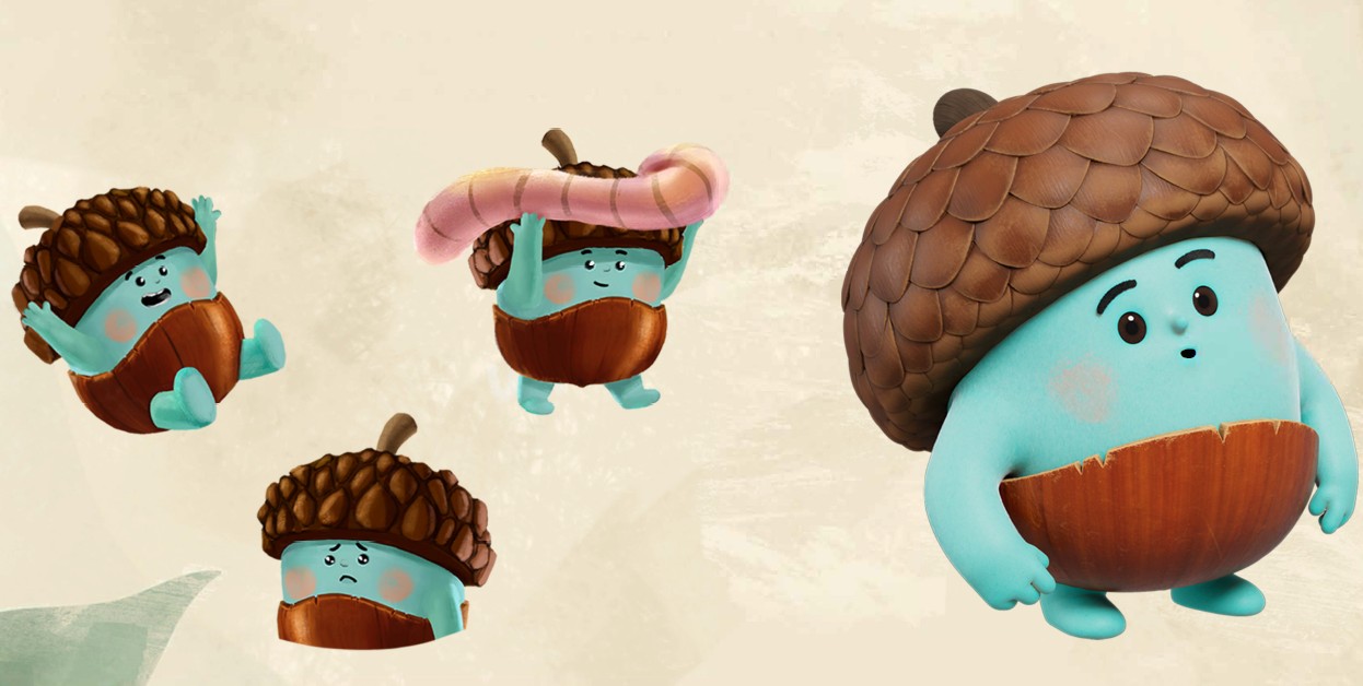 Néanmoins, pour des raisons techniques de rig et d’animation, le personnage du petit gland a un peu évolué. Sa carapace de corps, qui au départ n’était pas une couche-culotte mais une sorte de combinaison unie avec deux trous supplémentaires pour sortir les bras, a été retravaillée pour prévenir des problèmes d’animation gestuelle.