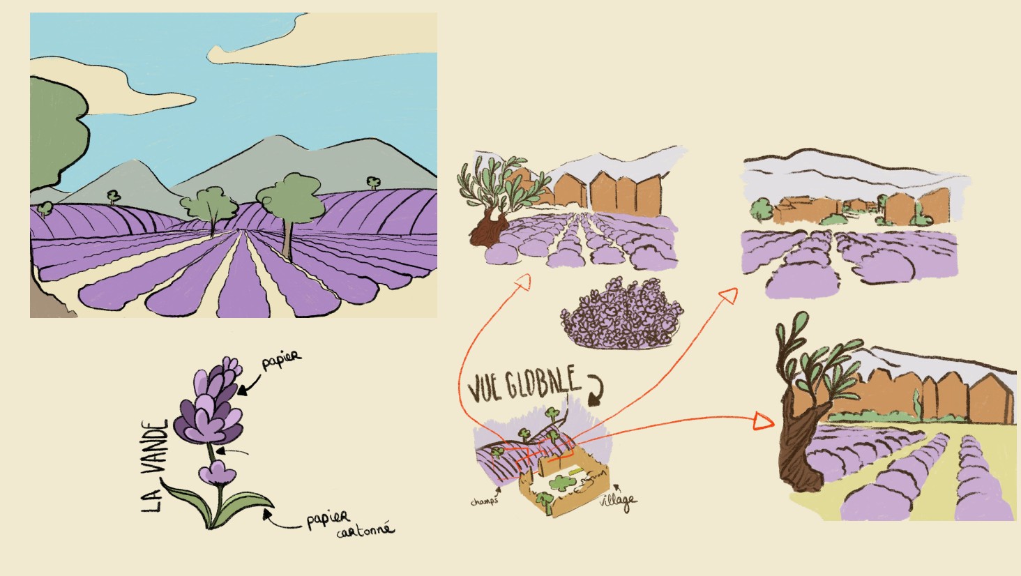 “ Nous nous sommes inspirés de l’ambiance de petit village ensoleillé du film Luca, notamment pour son traitement des petits villages côtiers et son atmosphère estivale. Des lieux réels comme Saint-Guilhem-le-Désert ou Èze ont également nourri notre direction artistique, avec leurs ruelles étroites, leur architecture typique du sud et leur charme authentique. Enfin, et comme expliqué plus tôt, nous avons puisé dans l’esthétique des villages miniatures de santons, qui ont inspiré l’aspect maquette de notre décor. Nous nous sommes aussi appuyés sur les films du studio LAIKA pour appréhender les miniatures.”