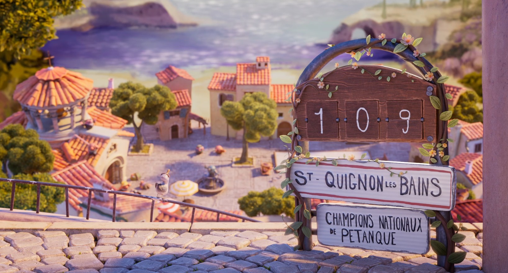 En toile de fond, le petit village fictif de Saint Quignon les bains est plus vrai que nature, une carte postale stylisée que l’équipe a travaillé avec finesse, pour reproduire un univers à la fois familier et idéalisé de ce que peut être le sud.