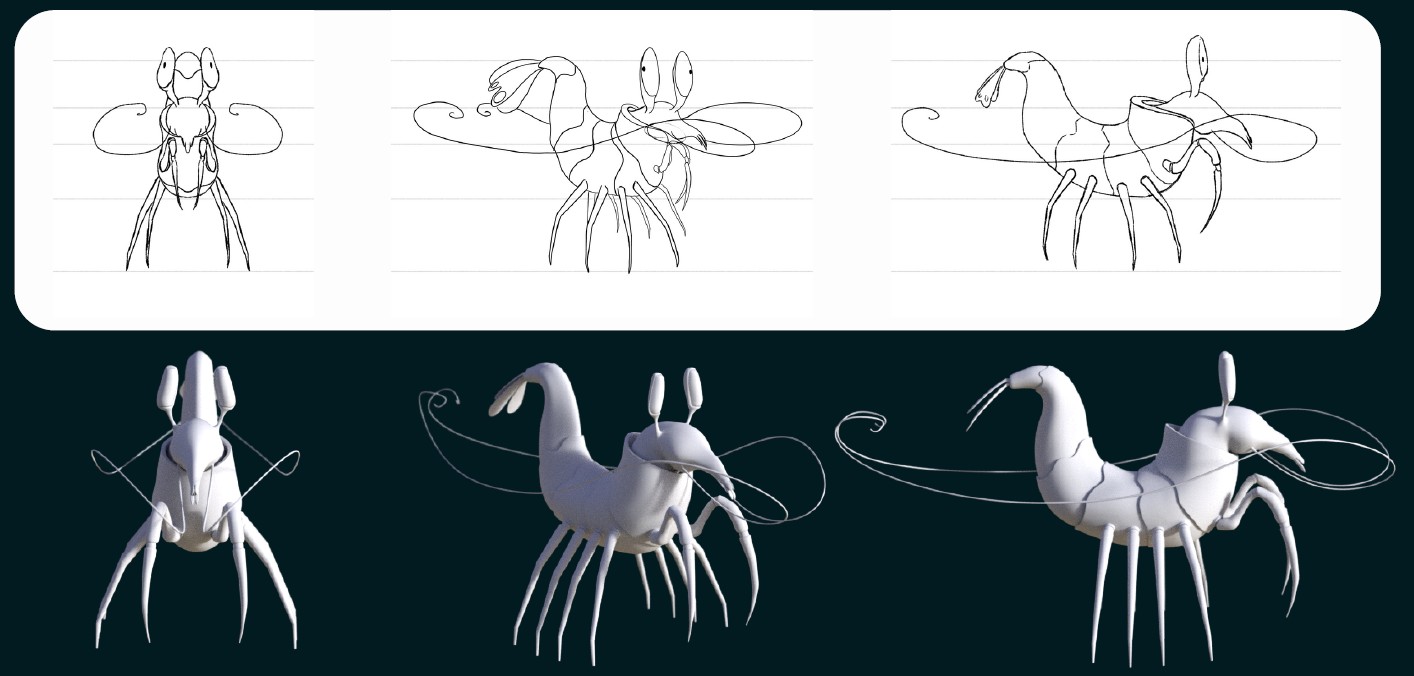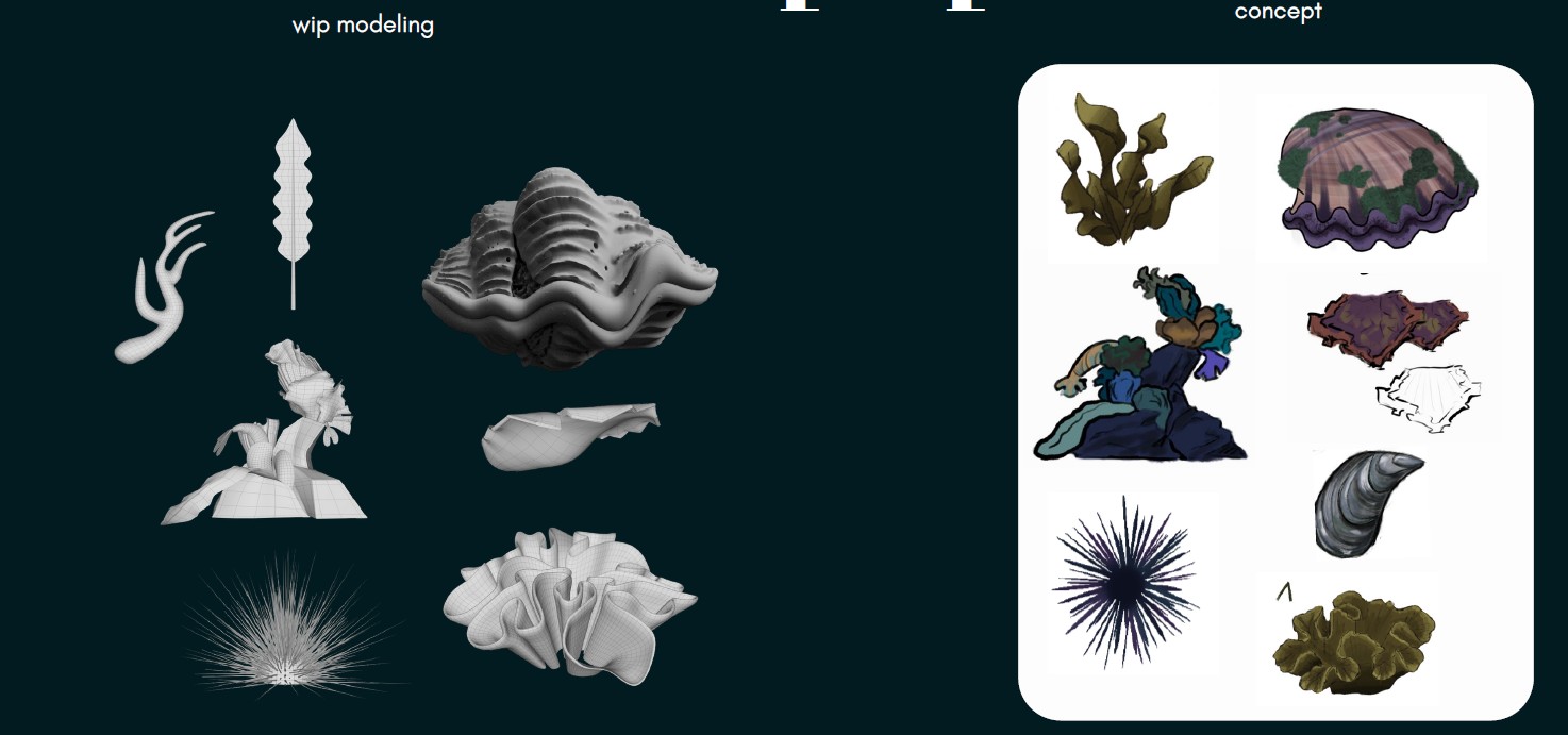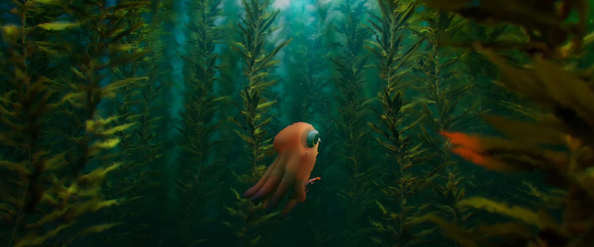 Kawa le suit prudemment hors de la grotte. Elle découvre alors une créature majestueuse et colorée qui plante son corail et projette des couleurs dessus avant de partir.