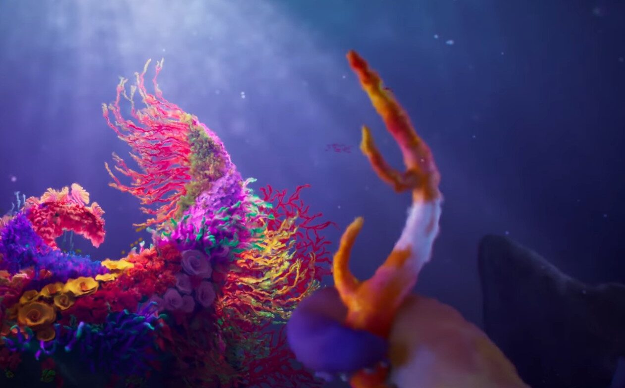 Son corail est désormais magnifiquement coloré et elle réalise qu’elle se trouve à l’intérieur du récif corallien qu’elle observait depuis chez elle.