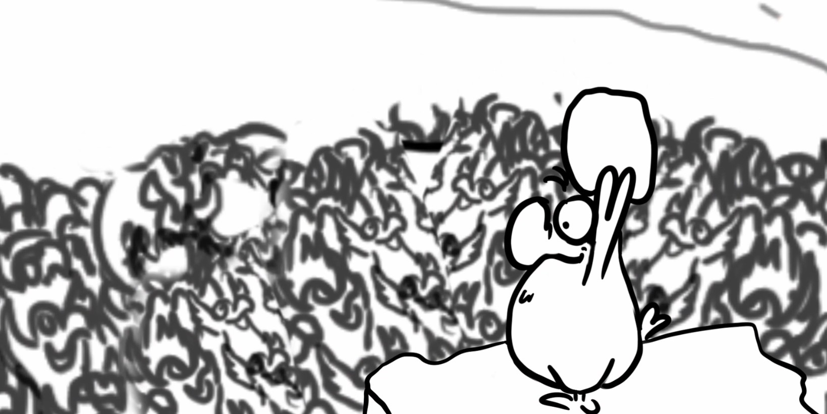 Au fil des tentatives ratées, les morts se multiplient. Les âmes des dodos défunts montent péniblement vers le paradis par un interminable escalier céleste, soulignant l’absurdité tragique de leurs efforts. Malgré les pertes, les survivants refusent d’abandonner. Un dodo ingénieux grave de nouveaux dessins sur la stèle, représentant une idée plus ambitieuse : construire une gigantesque fusée vivante faite de dodos empilés les uns sur les autres.