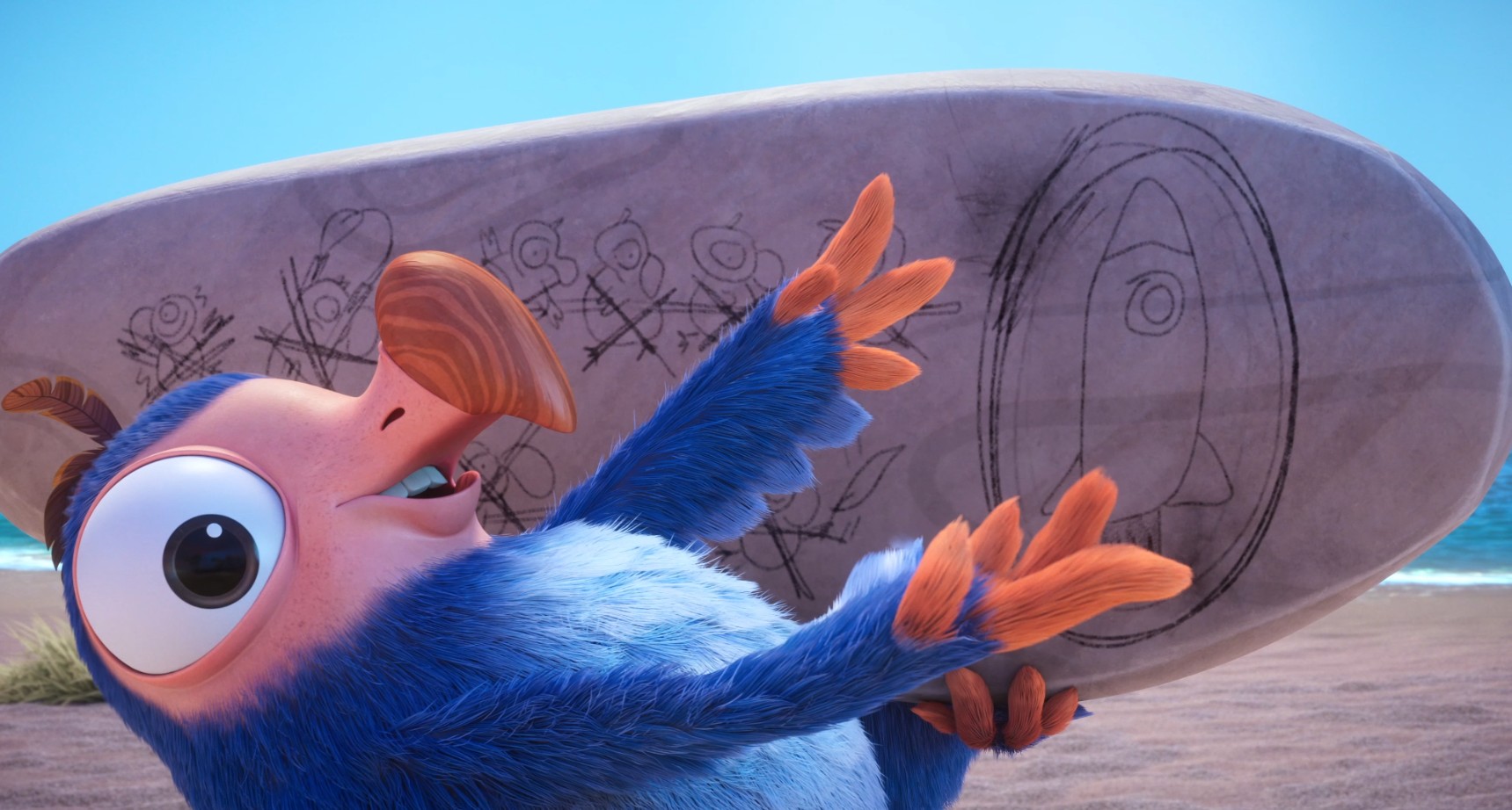 Intrigué, il la déterre et la montre aux autres dodos. Gravés sur la pierre, des dessins rudimentaires semblent raconter une histoire : celle de dodos tentant de s’envoler pour atteindre l’île paradisiaque et ses fruits. L’espoir renaît aussitôt au sein du groupe.