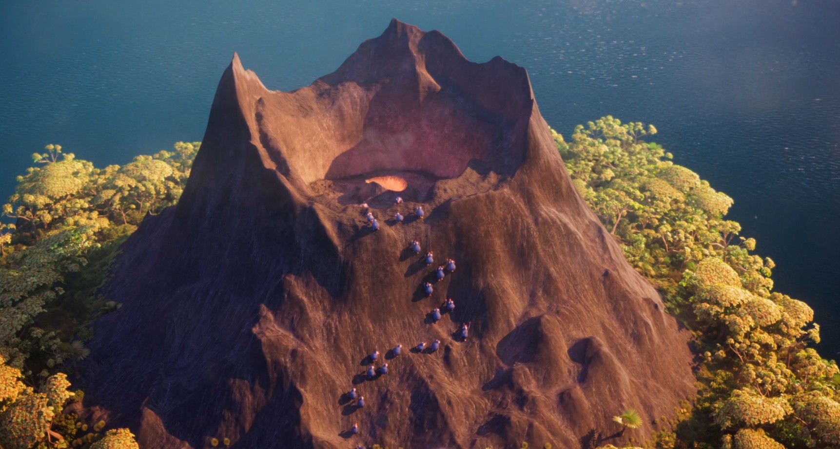 Portés par cet ultime espoir, les dodos gravissent le volcan et s’assemblent tant bien que mal pour former la fusée. Dans un élan collectif, ils se jettent dans le cratère afin de provoquer une éruption censée les propulser vers le paradis tant convoité. L’éruption est spectaculaire… mais le plan échoue une fois encore. La fusée s’écrase, les dodos retombent dans la lave, et le chaos est total.