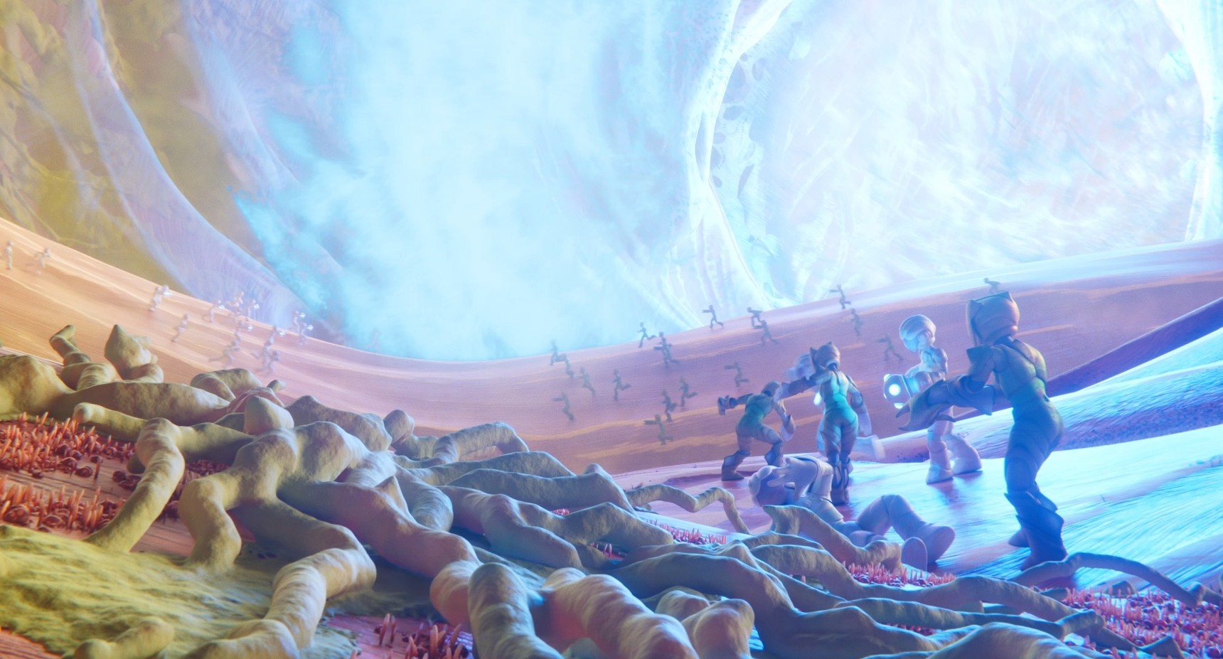 Dans un monde organique microscopique se trouvant à l’intérieur d’un corps, une armée de corps étrangers attaque les défenseurs de ce monde.